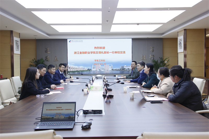 3月25日上午,浙江金融职业学院党委学工部部长王懂礼一行五人来永利官网考察交流。校党委委员、副院长张震宇、学生处处长李洁琦、副处长陆亚波及各二级学院副书记在1646接待到访来宾,开展交流分享。会议由李洁琦主持。