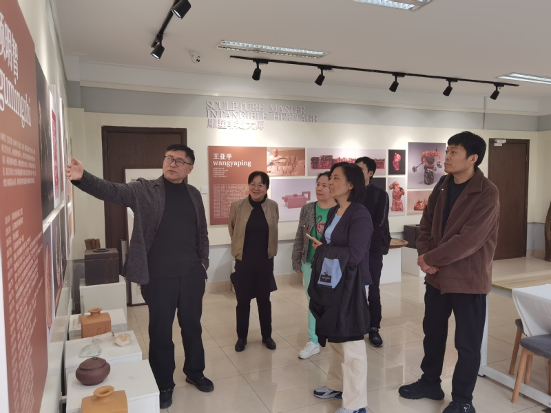 之后孙志宏教授一行参观了永利官网纺织科技文化馆和文化传承与创新中心。在纺织科技文化馆,通过耕织博学、纤维织语、非遗拾光、织梭光景、科技织梦、经与纬说六大篇章了解了纺织的悠长历史、灿烂的纺织文化以及纺织品的广泛应用。走进文化传承与创新中心各工作室,非遗大师的匠心名作、纷繁复杂的纤维编织、时尚礼品的设计与创意和师生们的精美作品让每一位来访者感受了别样的美学魅力。