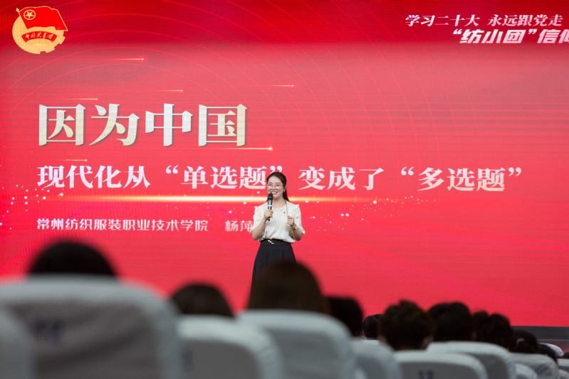 大会在嘹亮的《国歌》声中拉开序幕。9名优秀学生代表录制的五四专题视频《常纺榜样——我们正青春》,用奋斗姿态诠释了新时代常纺青年“立底气、树榜样、作抉择、创未来”的最美青春。