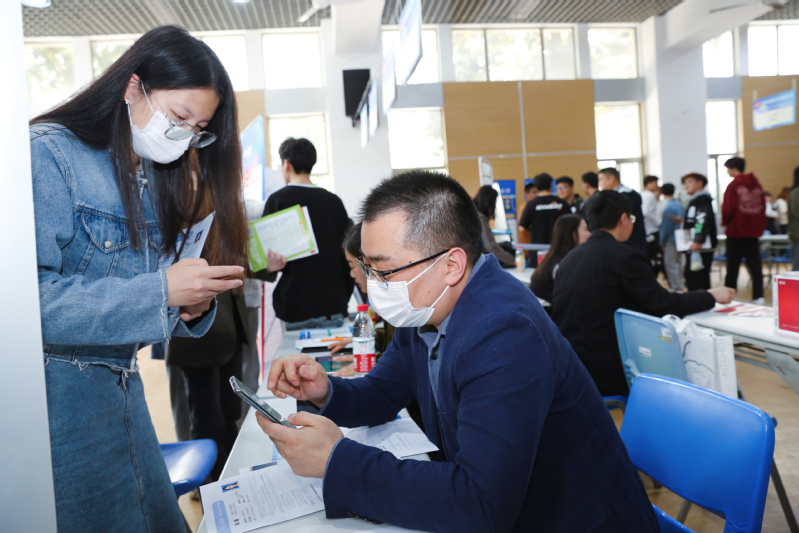 招聘会现场人头攒动,毕业生们手持简历满怀热情地穿梭在各个招聘展位前,不时停步驻足查看招聘信息,询问招聘要求,了解企业状况。用人单位招聘负责人与同学们热情交谈,面对广大毕业生的咨询耐心解答,详细介绍相应岗位要求和发展前景。现场也有部分同学组队而来,彼此分享着应聘的经验技巧。
