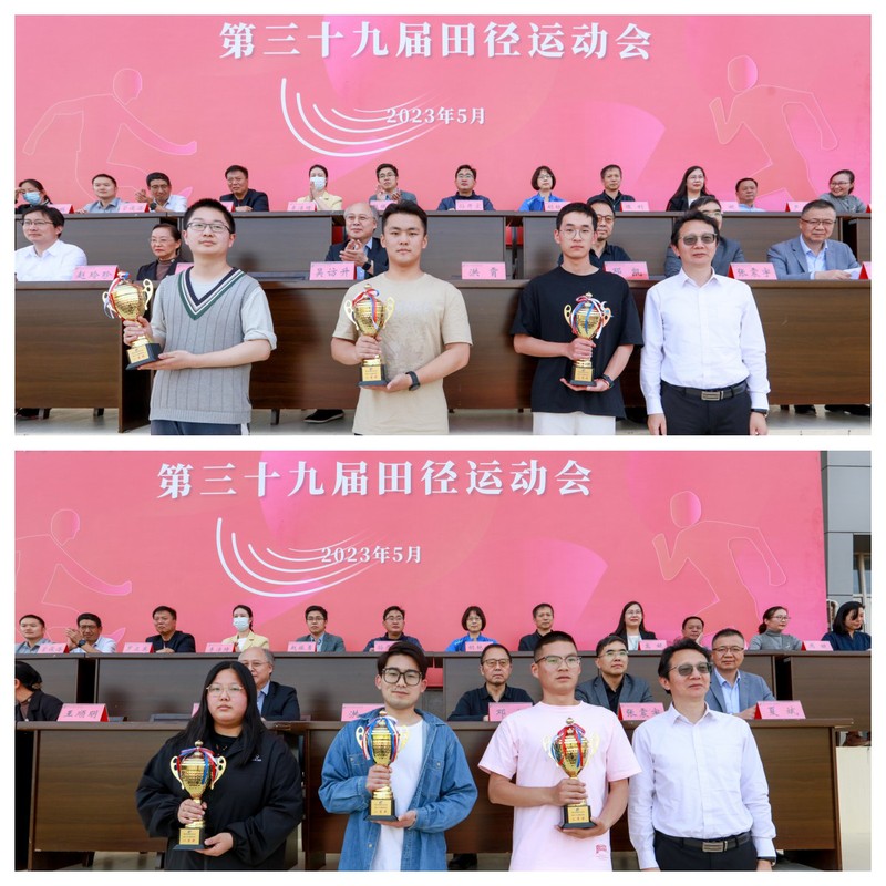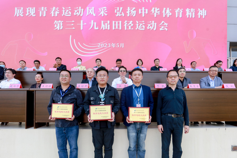 党委书记吴访升宣布运动会开幕后,正式鸣枪开赛。经过两天的激烈角逐,运动健儿们奋勇拼搏,共有706名运动员分别参加了A组、B组共19个项目的比拼,参赛率达到92%。有367人次获得嘉奖,其中49人次获得第一名,1项校田径运动会纪录被刷新(男子400米,成绩53秒47,机电学院戴鹏飞)。经过组委会评比,纺织学院、机电学院、服装学院被评为“体育道德风尚奖”;经贸学院、创意学院、机电学院分别取得A组(2021级)团体第一、二、三名;创意学院、机电学院、纺织学院分别取得B组(2022级)团体第一、二、三名。学校工会组织的教职工运动会同时举行了个人和团体项目的比赛。