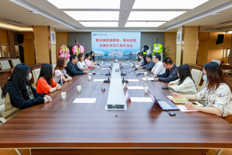洪霄致欢迎词,他简要介绍了学校办学特色,回忆了黔东南民族职院与常州纺院自2020年缔结的前缘,希望双方取长补短,共同进步,共谋发展。罗春寒感谢了学校对10名交换生的悉心培养,介绍了黔东南民族职院的办学及人才培养情况,希望两校增进交流,共创佳绩。