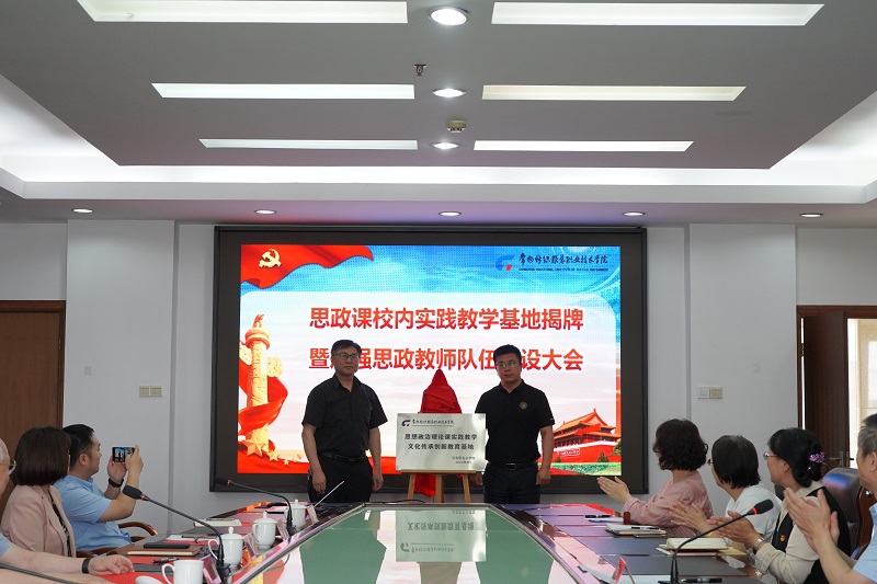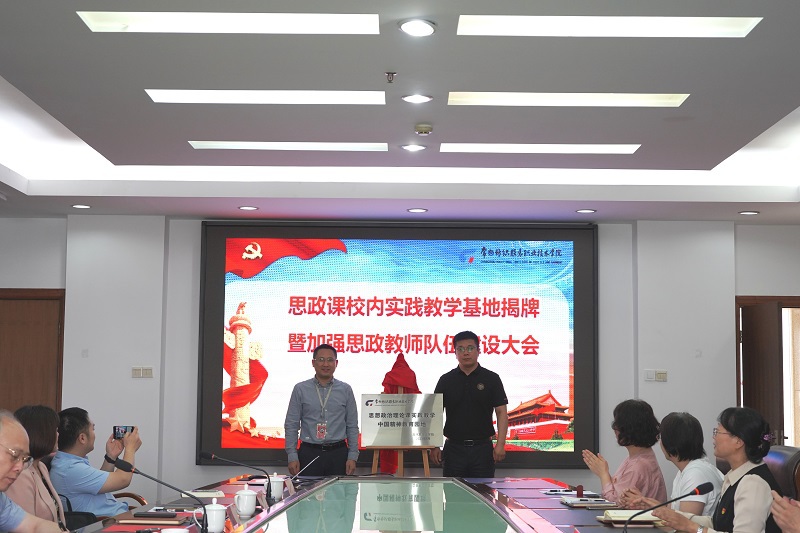 主题教育启动以来,马克思主义学院按照“学思想、强党性、重实践、建新功”的学习贯彻习近平新时代中国特色社会主义思想主题教育总要求,认真学原文、悟原理,深入调查研究聚焦影响思政课质量的实践教学条件问题,多方沟通、协同努力,建立起“四地一库”思政课校内实践教学基地、园地,思政课校内高质量实践教学资源相对不足问题得到较好解决。5月19日上午,马克思主义学院召开“思政课校内实践教学基地揭牌暨加强思政教师队伍建设会议”,学校党委书记吴访升、党委委员、宣传部部长夏斌、文化传承与创新中心主任顾明智、纺织学院院长郭雪峰、创意学院院长李方联、人事处副处长(主持工作)侯喜军、团委书记朱鹏、教务处副处长祝燕芳及全体思政课教师参加了会议。会议由马院直属党支部书记、院长陈利主持。