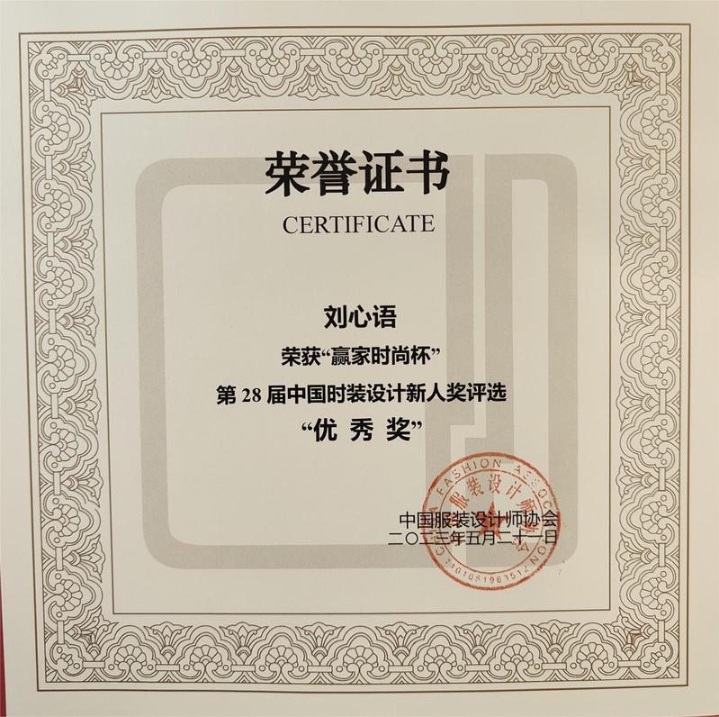 刘心语获第28届中国时装设计新人奖评选“优秀奖”