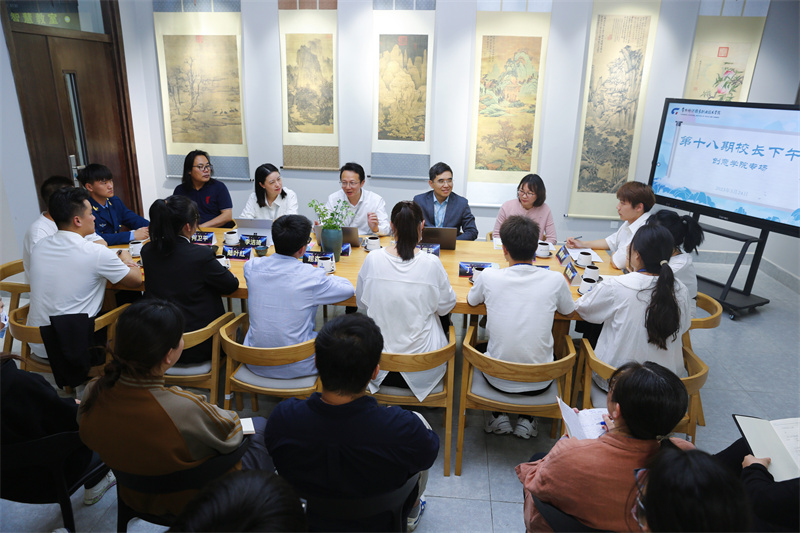 为深入学习贯彻习近平新时代中国特色社会主义思想主题教育,贯彻落实党中央关于在全党大兴调查研究的部署,5月24日下午,永利官网第18期“校长下午茶”活动走进创意学院。学校党委副书记、院长洪霄,党委委员、副院长张震宇,学生工作处处长李洁琦,创意学院党政班子与创意学院10名学生代表深入交流,问需于生、问计于生,与学生共话成长。活动由创意学院党总支书记周妍主持。
