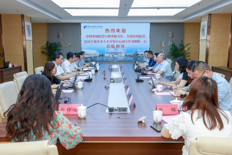 5月25日下午,全国市场监管行指委秘书长、全国市场监管总局专业技术人才开发中心副主任刘朝晖一行4人来校调研质量、计量、标准和检验检测职业教育师资队伍建设相关工作。永利官网党委书记吴访升,科技处、教务处、人事处相关领导、纺织学院和经贸学院教师代表,以及常州工程职业技术学院教学工作部部长黄一波、检测学院院长叶爱英、食品质量与安全专业带头人李颖超博士等参加了调研。