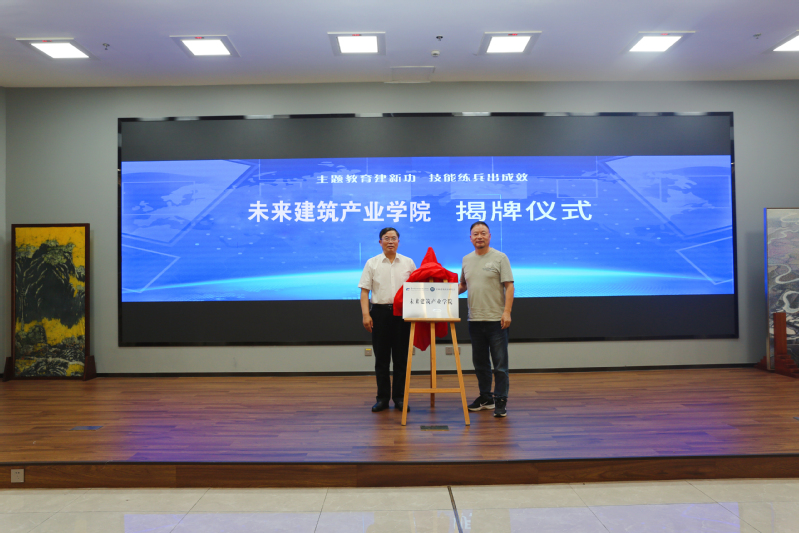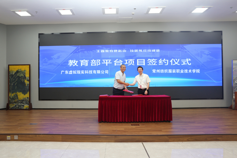 技能大赛颁奖环节结束后,张震宇为省级产业教授王明盛和省级产业教授、产业博士宋小波颁发了聘书,张文明与常州建筑研究会、江苏印象乾图文化科技有限公司代表共同揭牌未来建筑产业学院、乾图数字创意产业学院,洪霄与完美世界教育科技(北京)有限公司、广东虚拟现实科技有限公司代表签订了教育部高校学生司第二期供需对接就业育人项目协议。