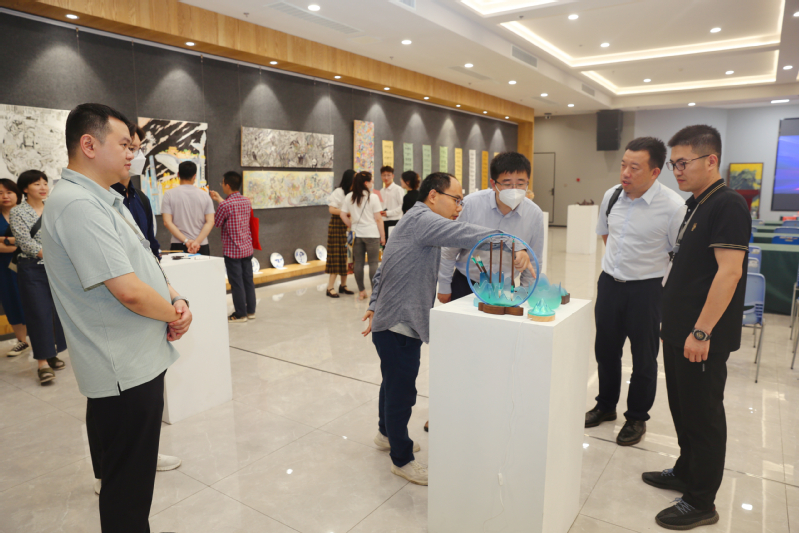此次技能大赛月活动开展正值全校上下深入学习贯彻习近平新时代中国特色社会主义思想主题教育之际,创意学院在切实抓好“强党性 学思想”全方位推进全体党员学原著、悟原理的同时全面、深入推进将高质量发展作为主题教育“重实践 建新功”的重要举措。6月1日下午,创意学院在领秀展厅组织开展了技能大赛月成果展示暨产教融合推进会,学校党委副书记、院长洪霄、党委委员、副院长张文明、党委委员、副院长张震宇、学工处副处长陆亚波、教务处副处长许晓宇、完美世界教育科技(北京)有限公司副总裁杨昊、经理赵佳斌、广东虚拟现实科技有限公司经理郭俊峰、常州建筑研究会会长、大成装饰有限公司董事长吴震昶、江苏印象乾图文化科技有限公司经理郝丹、东方盐湖城旅游发展有限公司总经理王星宇、常州花涑文化拓展有限公司副总经理王安、常州茅山文化发展中心助理主任徐科、卓谨信息科技(常州)有限公司经理梁萌萌、武进区湖塘王明盛浅刻工作室、正高级工艺美术师王明盛及创意学院师生代表参加了会议。