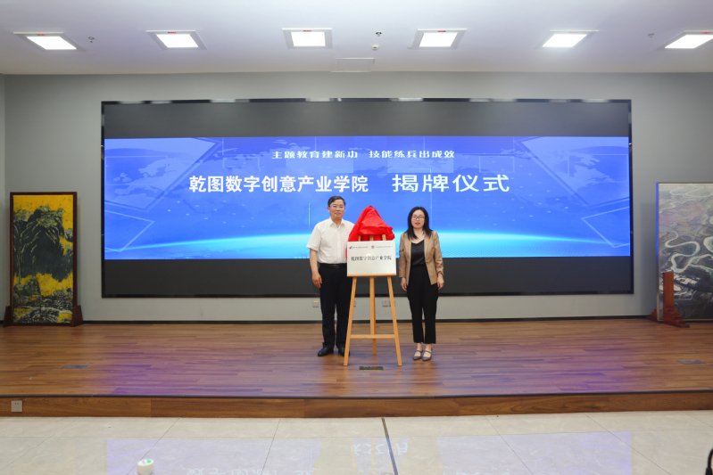 图4 副院长张文明为乾图数字创意产业学院揭牌