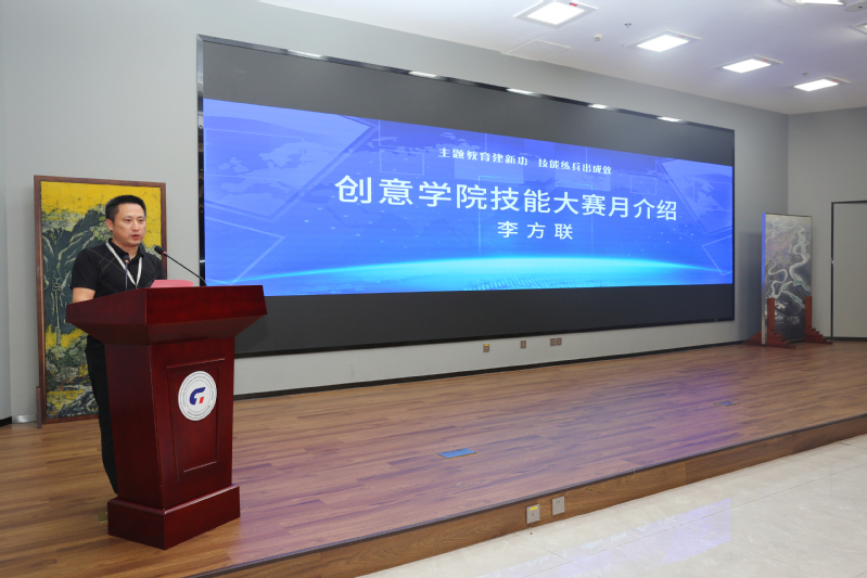 图9 创意学院院长李方联介绍技能大赛月开展情况