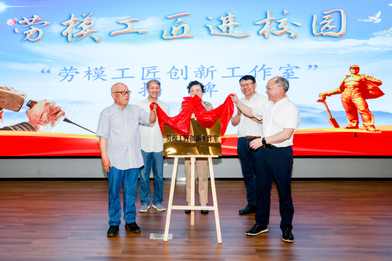 党委书记吴访升与劳模们为“劳模工匠创新工作室”揭牌