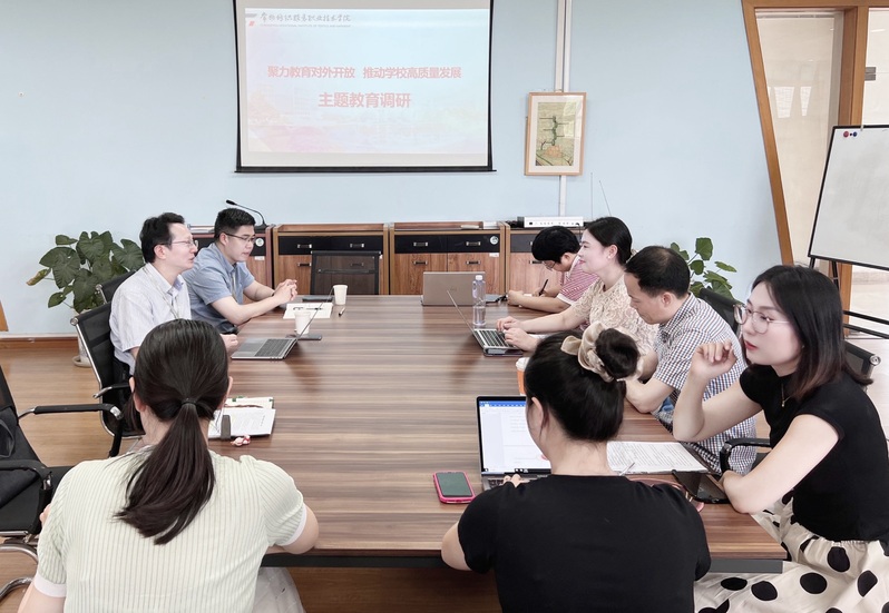 2023年6月13日下午,校党委副书记、院长洪霄赴外事办在5413会议室围绕“聚力教育对外开放,推动学校高质量发展”开展主题教育专题调研活动,党政办主任赵振勇参会。