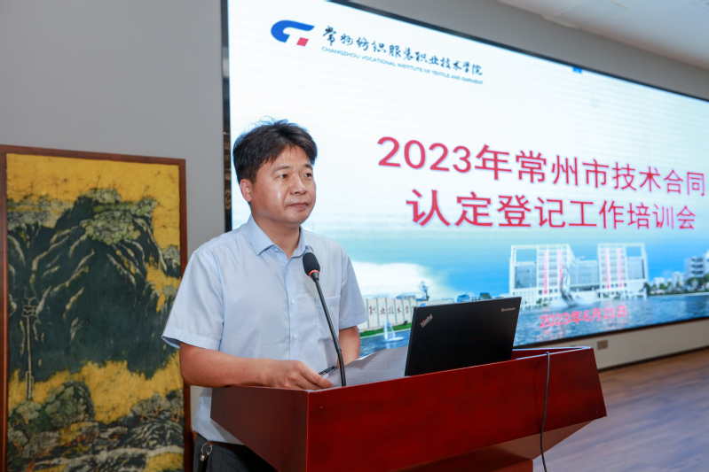 6月21日下午,2023年常州市技术合同认定登记工作培训会在永利官网成功举办,常州市科技局专职委员赵新、江苏省科技资源统筹服务中心专家徐洪滔、党委委员、副院长张文明以及来自常州市各高校、研发平台80余名技术合同登记人员参加培训工作。会议由常州市科技局科技服务业处唐兆有处长主持。