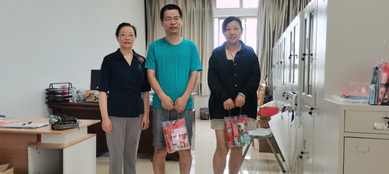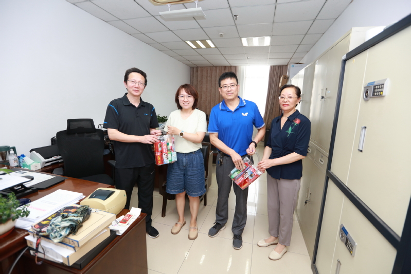 校领导每到一处,都与坚守在工作岗位的工作人员亲切交谈,详细询问他们的生活和暑假期间各项工作开展情况,感谢他们“舍小家、顾大家”,坚守工作岗位,为推进学校工作正常运行及校园和谐稳定所做出的贡献,并为他们送上工会精心准备的慰问品。