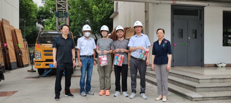 在9号楼修缮工程施工现场,洪霄代表学校对高温下坚守岗位的工作人员表示感谢,叮嘱他们在做好本职工作的同时要注意防暑降温,落实好各项安全措施,安全有序开展工作,确保各项改造任务保质保量如期完成,为新学期顺利开学做好后勤保障。