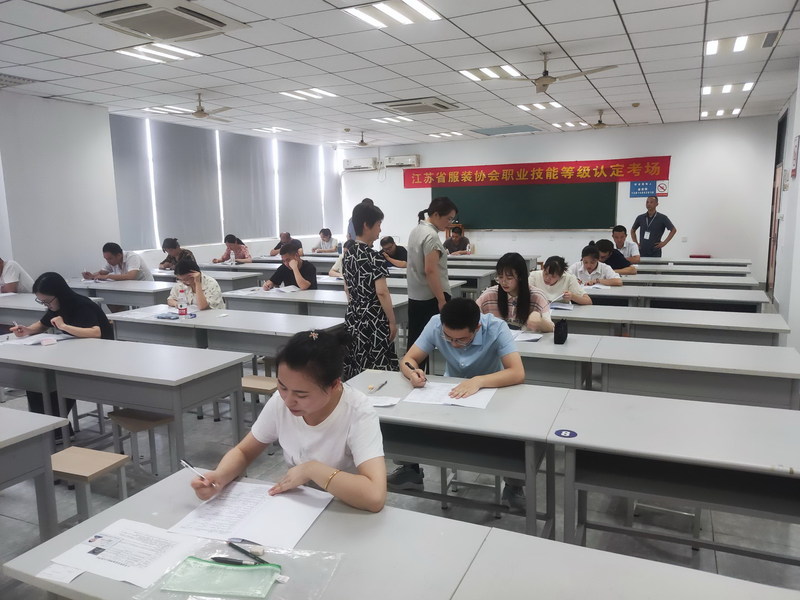 8月13日,永利官网服装学院组织承办江苏省服装协会服装制版师(三级/高级工、四级/中级工)职业技能等级认定。江苏省服装协会会长龚慧娟、常州市人社局技能评价部部长虞秀珍等同志亲临现场指导、督察,来自江苏苏美达集团有限公司、晨风集团股份有限公司、波司登股份有限公司等单位的30名服装技术人员参加了职业技能等级认定。教务处、服装学院组织协调相关鉴定工作。