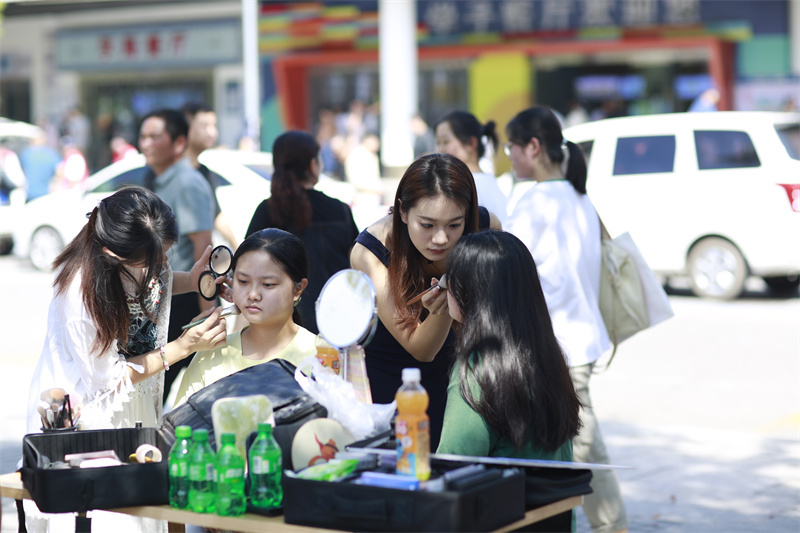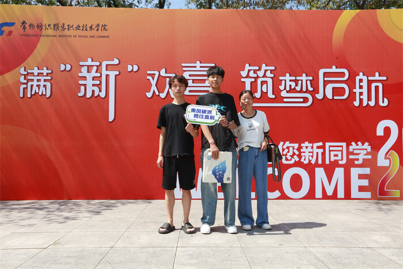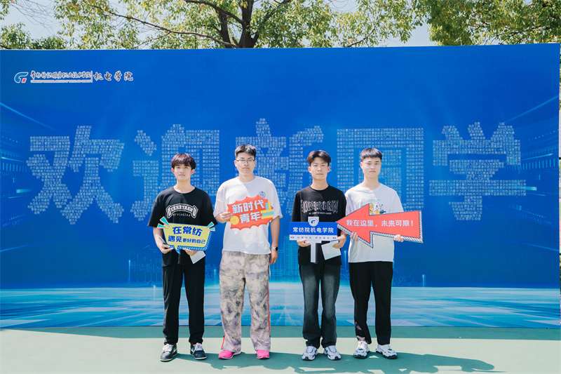 在萌新们奔赴学校的同时,学校及可敬可爱的老师、同学们也在为“第一次见面”打造专属仪式。学校在创美广场、校园内、接待点设置了打卡点,开展“我与常纺第一张合影”特色迎新活动。“还没有轮到的同学不要着急,马上就到下一位。”在创美广场,服装学院组织了形象设计专业学生骨干、学生会宣传部、摄影社团学生干部为新生化妆、拍照,吸引了不少新生驻足。不少新生在收到与学校的第一张合影后非常感动。“谢谢老师,谢谢学长学姐,非常有纪念意义。”服设2332班胡巧月同学兴奋地说道。经贸学院在接待现场为新生送上了精彩的舞狮表演,祝愿萌新们好运常伴,度过精彩的大学生活,还为报到当天过生日的学生举办了生日会,送上蛋糕与祝福。机电学院将1216名新生的名字组成“欢迎新同学”的字样,希望新生将“小我”融入“大我”,弘扬工匠精神,不负时代,不负青春。
