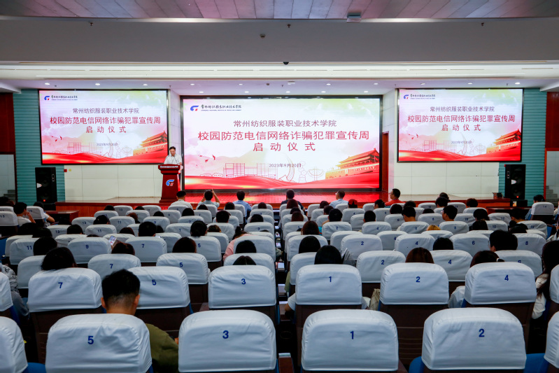 为深入贯彻全国、全省打击治理电信网络新型违法犯罪工作电视电话会议精神,营造良好的安全育人氛围,切实保护广大师生的财产安全。9月20日下午,永利官网在校务中心一楼报告厅举行“防范电信网络诈骗犯罪宣传周”启动仪式。校党委委员、副院长张震宇,常州市公安局武进分局科教城派出所副所长邹幼红,学校各相关职能部门主要负责人、各二级学院学生工作负责人和学生代表共计500余人参加,启动仪式由保卫处处长罗卫东主持。
