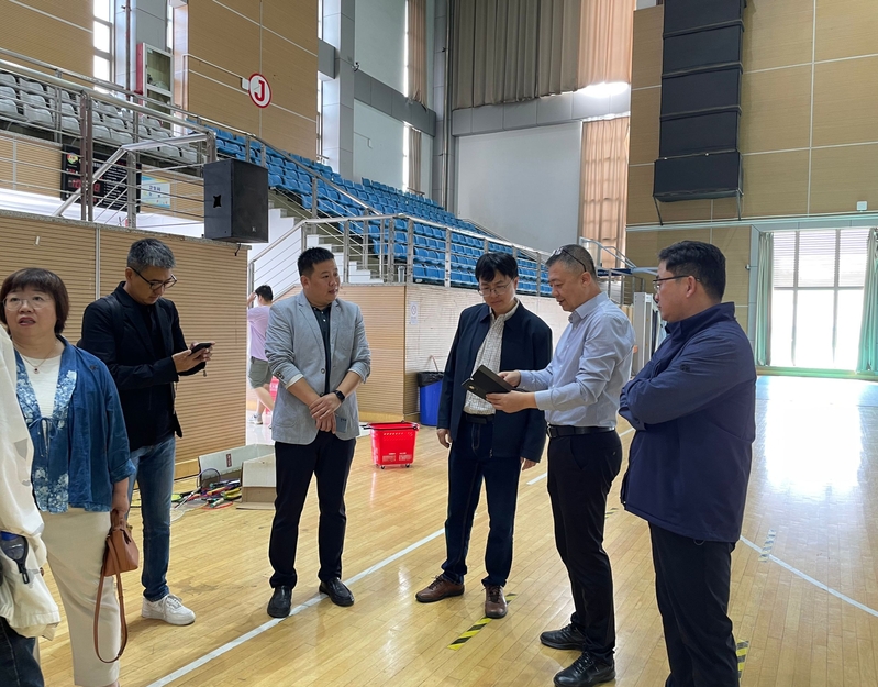 会后,申明副主任一行先后考察了体育馆、报告厅和领秀展厅等场地。