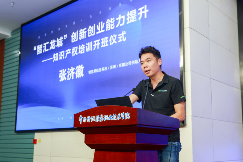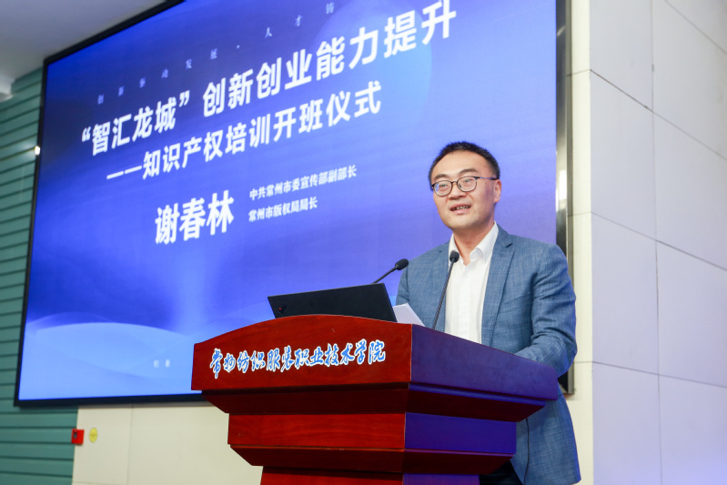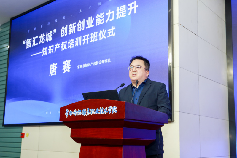 本次知识产权培训班是在中共常州市委宣传部、常州市版权局的指导下,由常州市科教城管理委员会主办,武进区市场监督管理局、yl6809永利官网、常州市知识产权协会、智慧芽信息科技(苏州)有限公司承办,江苏省中以产业技术研究院协办,旨在提升高职院校学生对知识产权行业的认识和理解,培育创新与知识产权专业复合型人才,助力常州市创新实务人才队伍建设,支撑产业创新和高质量发展。中共常州市委宣传部副部长、常州市版权局局长谢春林、常州科教城管委会教育处处长周洋、武进区市场监督管理局局长王勇、智慧芽信息科技(苏州)有限公司创始人张济徽、常州市知识产权协会理事长唐赛等多位嘉宾受邀参加了本次开班仪式。本次活动由科技处、校企合作处处长李爱红主持,480余名选课的师生参加。