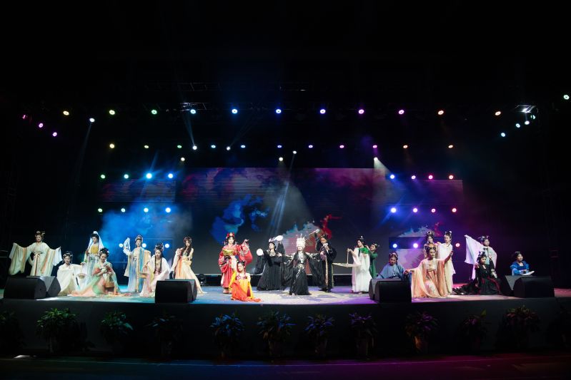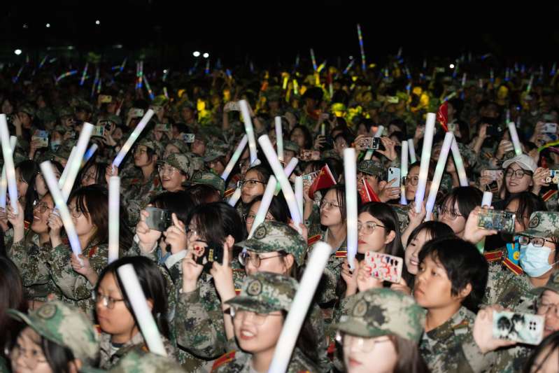 第二篇章“梦想起航·未来可期”中,由服装学院、模特社带来的时装秀《模力绽放》,不盲从于潮流,拒止步于传统,始终秉承时尚引领、技艺结合、产教融合、协同育人的理念;来自人文学院的舞者们用神形兼备的舞蹈编排方式,以真挚的情感和动人的舞姿,演绎了一场《徊·回》的故事;在青春与军训不期而遇的时刻,同学们一起观看由教官带来的马头琴演奏《风中的苏鲁德》和倒功表演,为全体观众锻造了沙场点兵展凌云的壮志豪情。