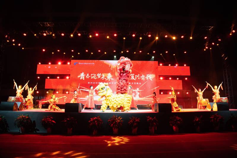 在开场舞《盛世绽放》中晚会拉开帷幕,学子们用手中的荧光棒绘出夺目光亮,演绎着属于常纺人的绚丽梦想。