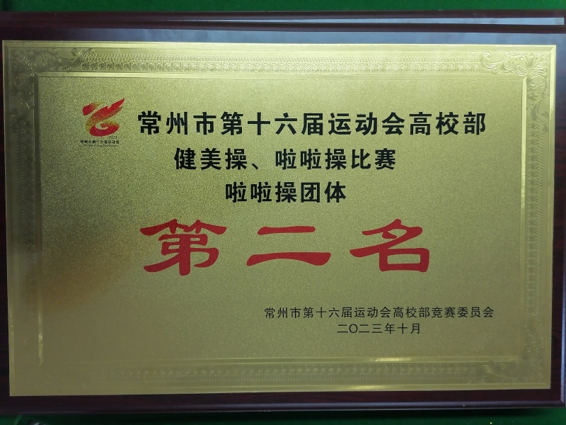 10月14日,常州市第十六届运动会高校部健美操、啦啦操、街舞比赛在常州工业职业技术学院举行。由体育部沈烨萍老师训练指导的啦啦操校队取得啦啦操示范套路第一名、啦啦操团体第二名、健美操规定套路第二名、健美操团体第二名。
