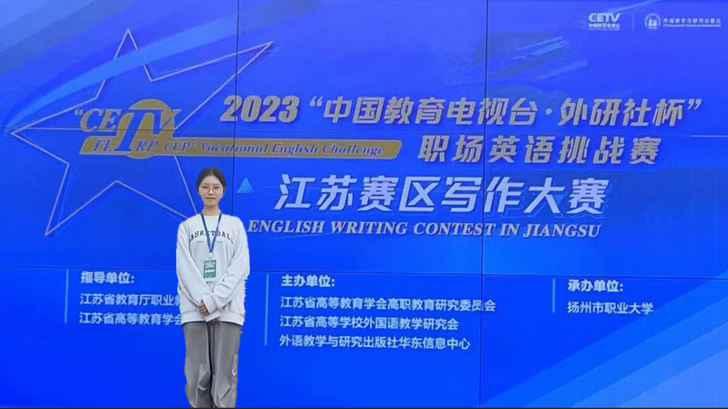 近日,2023年“中国教育电视台外研社杯”职场英语挑战赛江苏省省赛圆满落幕。在写作大赛中,商英2331徐菲阳荣获特等奖,将代表江苏省参加12月份举行的全国总决赛,影视213B牟坤荣获三等奖。在演讲大赛中,商英223本陆杨逸荣获一等奖,幼服2332史妤婕荣获二等奖,物流2332袁钲皓荣获三等奖。