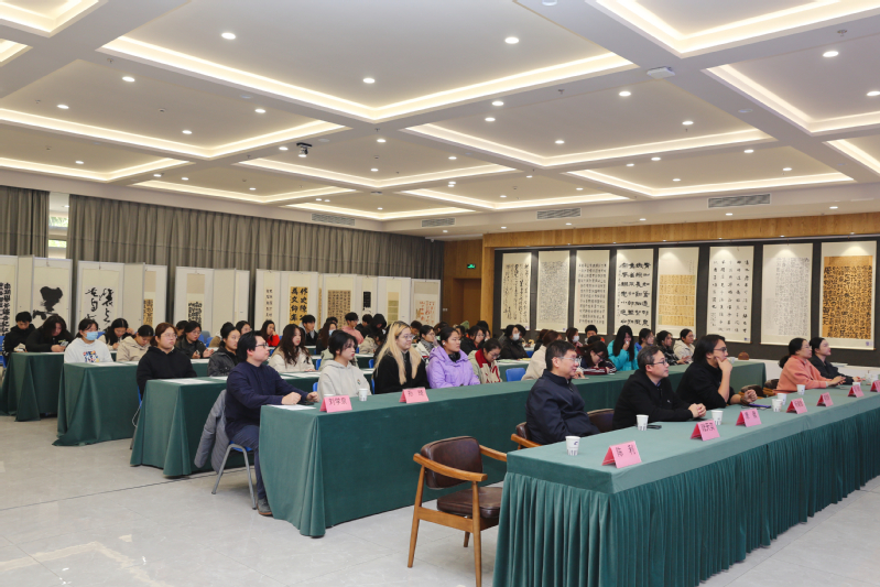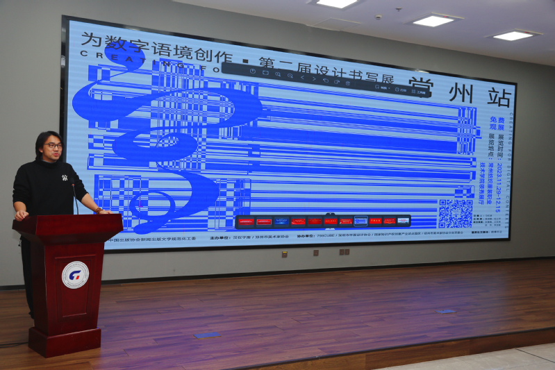 首先,教师代表创意学院视觉传达专业教师刘学泉表示,感谢主办方的精心策划与组织,以及学校能将如此高质量、高水准的展览引入本校,让我们有近距离观摩学习的机会。汉字作为东方独特的符号,蕴藏着深厚的文化内涵,传达着中国传统文化精髓。在“数字语境”的背景下,书法在设计中呈现更多的可能性,设计让传统文化更加绚丽多姿。本次展览搭建起了传统书法与现代设计之间的桥梁,为设计应用探索更多的发展路径。