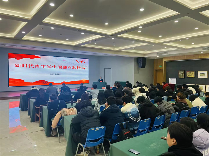 张震宇以《新时代青年学生的使命和担当》为题,结合党的二十大报告和习近平总书记的重要讲话精神,用生动鲜活的案例和丰富的历史文献,讲述了青年和时代的关系、新时代的深刻内涵、新时代青年的使命和担当,深入浅出地为同学们上了一堂专题思政课。他希望全体班长能增强学生干部的“志气”,做坚定不移听党话、跟党走的“先锋”;增强学生干部的“骨气”,做勇立潮头深刻实践的“排头兵”;增强学生干部的“底气”,做风清气正服务同学的“领头羊”。张震宇寄语全体学生干部要心怀“国之大者”,增强政治意识、大局意识、核心意识、看齐意识,争做勇挑重担、堪当大任的新时代学生干部,在常纺的校园里充分而全面发展,为学校的高质量发展贡献青春力量。