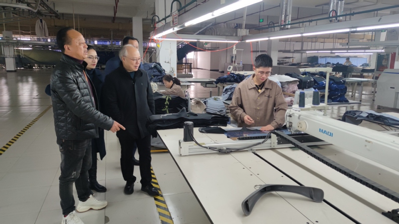 随后,周均芳邀请吴访升一行参观公司的产品展示大厅,数字化智能化生产车间、奥迪职业装服务仓,并走访考察企业员工食堂、宿舍等区域。