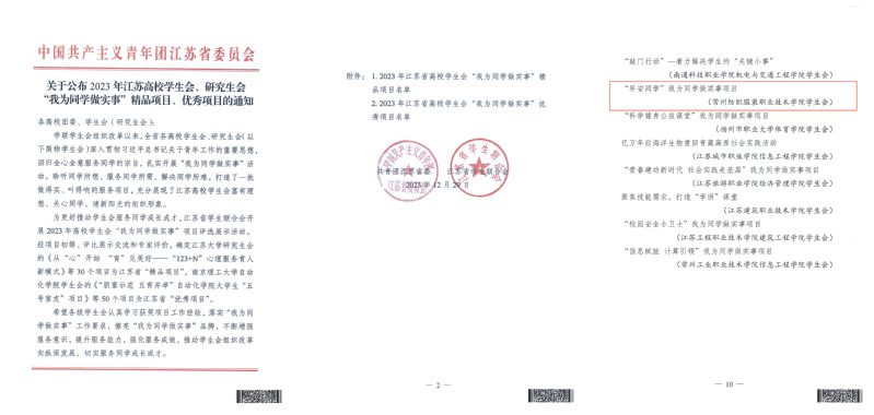 为深入学习贯彻习近平总书记关于青年工作的重要思想,推动学生会回归全心全意服务同学的宗旨,巩固学联学生会改革成果,近期,江苏省学生联合会开展“我为同学做实事”项目展示评选活动,校学生会《“早安同学”我为同学做实事项目》入选2023年江苏省高校学生会“我为同学做实事”优秀项目。