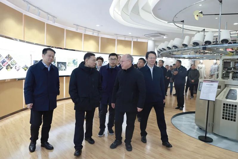 在纺织科技文化馆,彭斌柏一行了解永利官网在服务重大国家战略的纺织领域创新服务。观看了乔志勇等老师的可降解水溶性薄膜、无结渔网编织等,对永利官网老师积极对接产业技术创新、服务产业创新开展技术研发予以高度肯定。