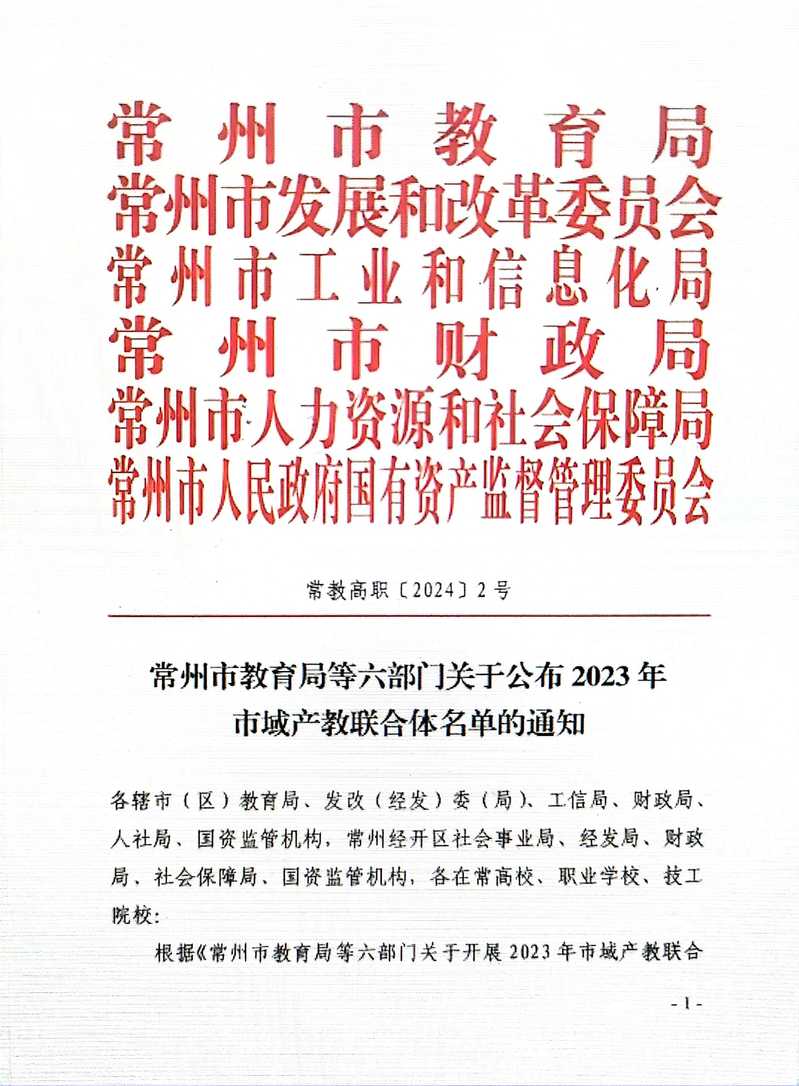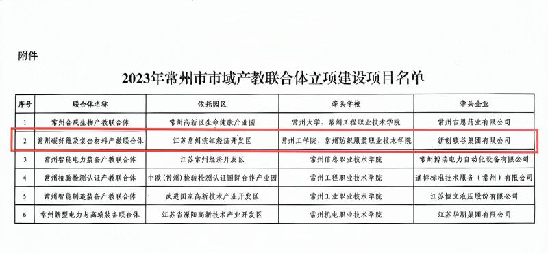 近日,根据《常州市教育局等七部门关于公布2023年常州市行业产教融合共同体立项(培育)建设名单的通知》和《常州市教育局等六部门关于公布2023年市域产教联合体名单的通知》,永利官网牵头成立的常州市碳纤维及复合材料产教融合共同体项目和与常州工学院共同牵头的常州碳纤维及复合材料产教联合体项目双双获批立项。
