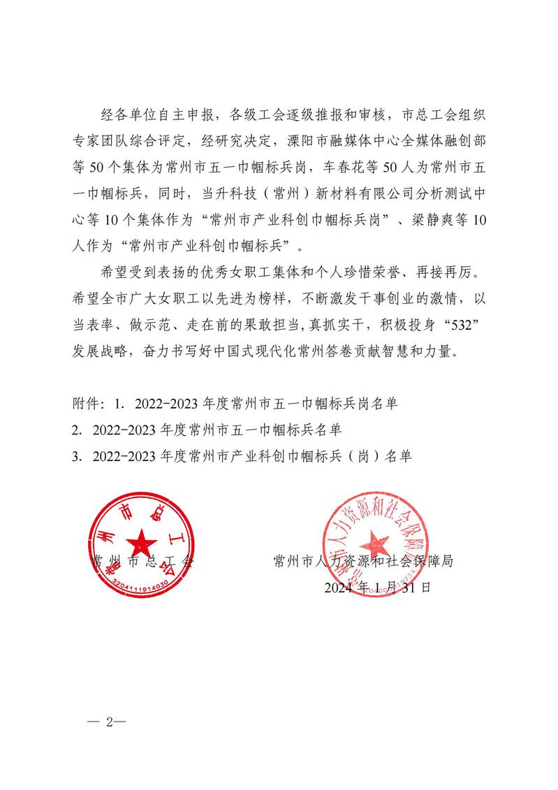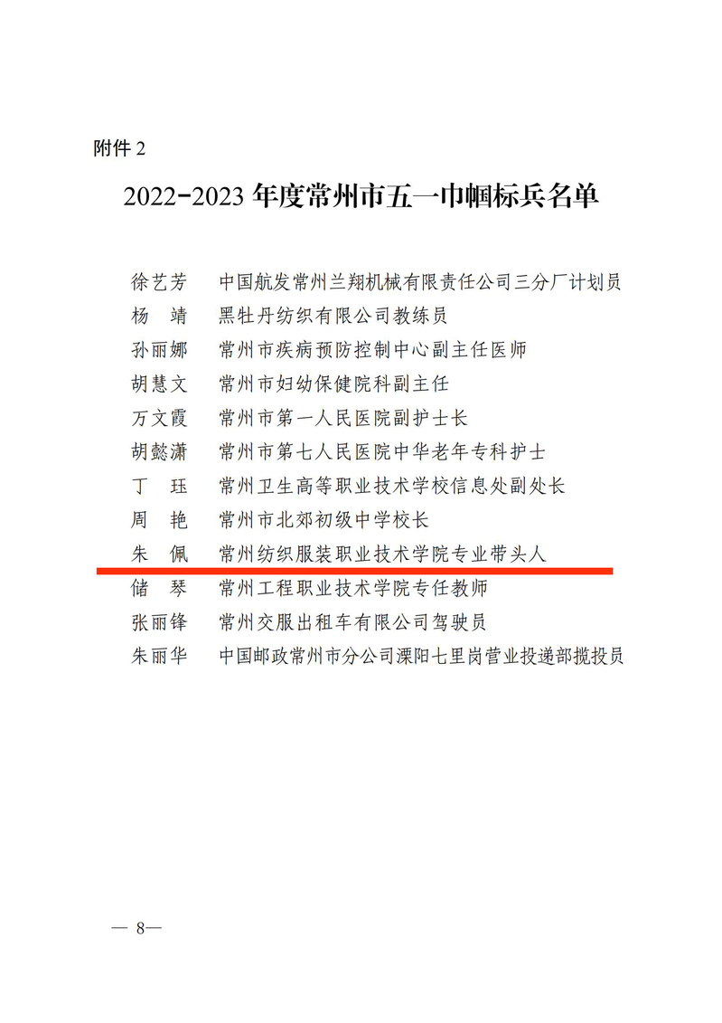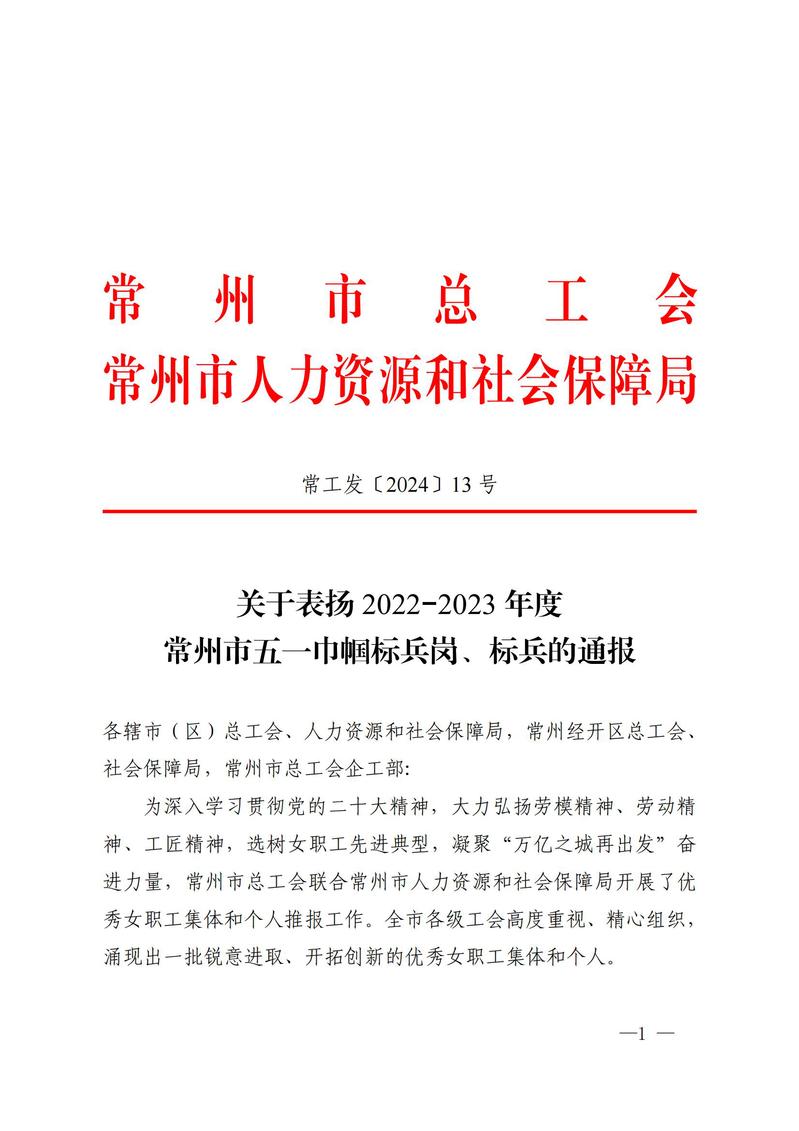 日前,常州市总工会、常州市人力资源和社会保障局发布了《关于表扬2022-2023年度常州市五一巾帼标兵岗、标兵的通报》(常工发〔2024〕13号),永利官网朱佩老师获得了常州市五一巾帼标兵的称号。