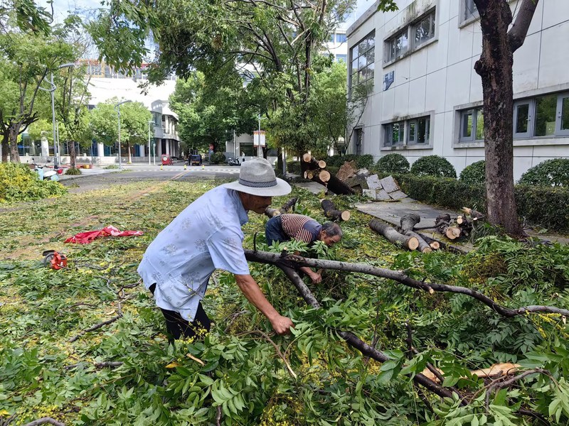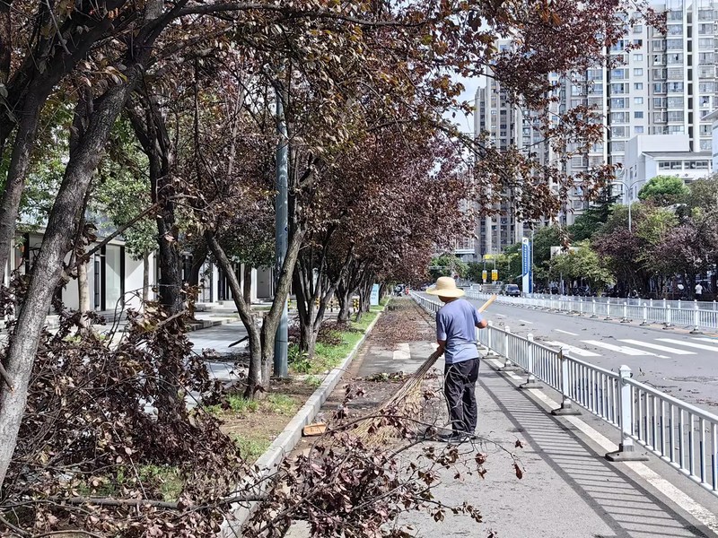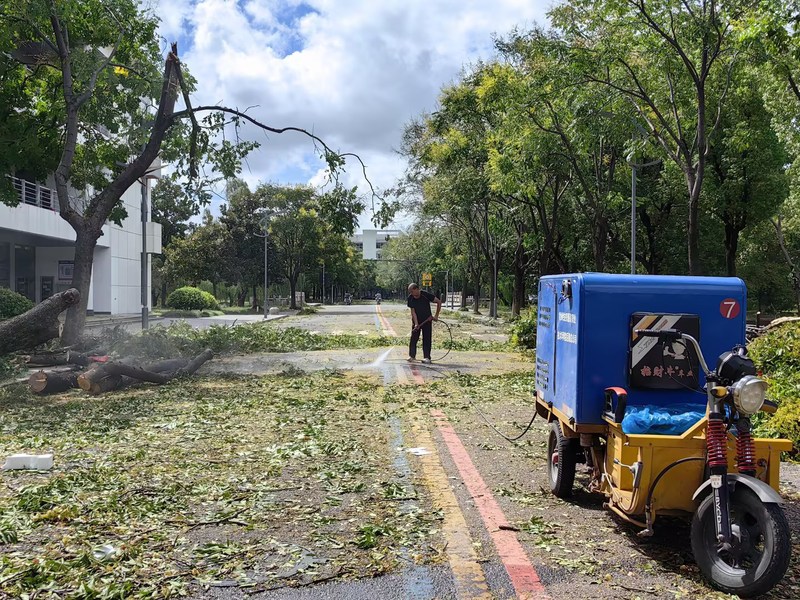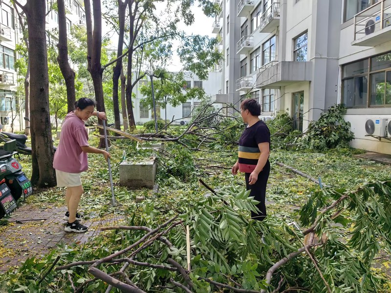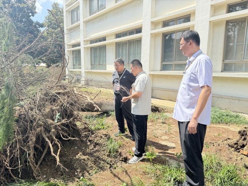 台风过后,校园出现多处树木倒伏、积水、散落树枝与杂物等紧急情况。为全面了解校园受损情况并及时开展后续修缮工作,校领导第一时间现场巡察,紧急调度。正值中秋佳节团圆之际,后勤保障部工作人员没有丝毫犹豫,吹哨报到,加班加点。后勤保障部直属党支部组织党员先锋队冲在一线,即刻清理路障,冲洗主干道路面,确保师生安全通行;工程人员全体出动,抢修设备,排查洗澡热水系统,检修空调,排查餐厅设施设备情况,确保学校师生的基本生活设施正常运行。同时,部门自上而下多次对教学楼、公寓、餐厅、重点设施设备等进行全面的隐患排查,为学校正常运行做好充分的准备,用实际行动诠释了“后勤不后,服务先行”的承诺。
