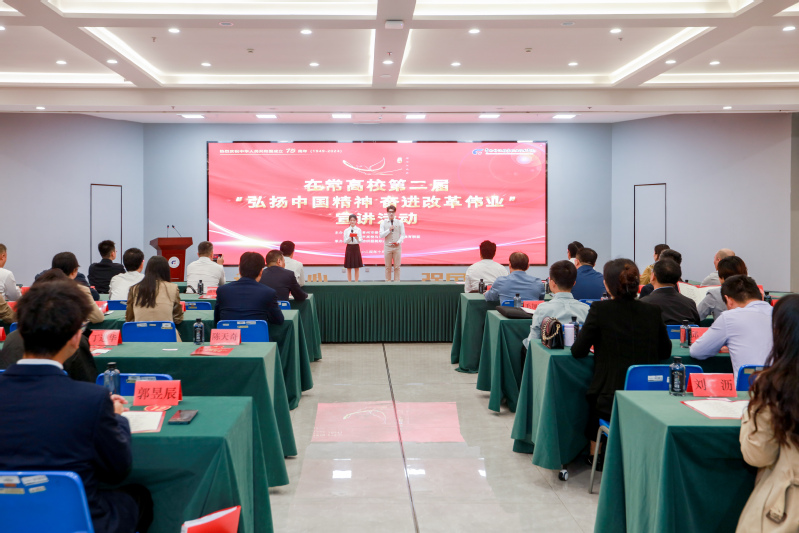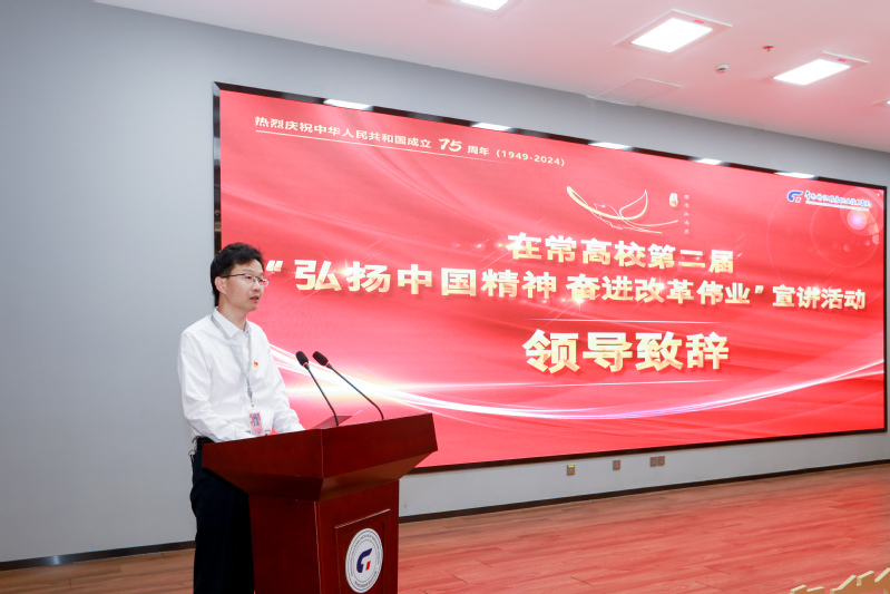 历史川流不息,精神代代相传。为深入学习贯彻党的二十届三中全会精神,庆祝新中国成立75周年,推进“大思政课”建设,发挥高校青年在理论宣讲中的重要作用,10月12日,由中共常州市委宣传部、常州市高校马克思主义理论教育联盟主办,永利官网承办的在常高校第二届“弘扬中国精神 奋进改革伟业”宣讲活动在领秀展厅隆重举行,主办方、在常各高校领导及师生代表参加宣讲活动,活动全程互联网直播。