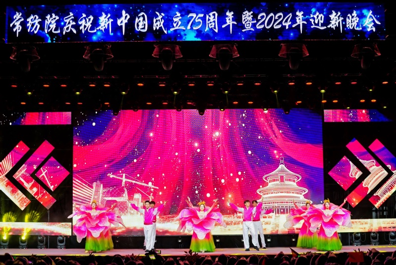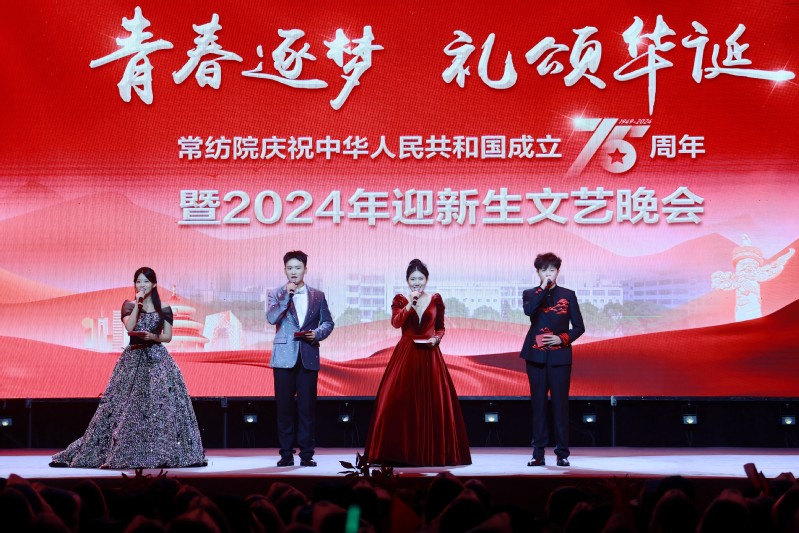 青春逐梦,礼颂华诞。本次文艺汇演献礼中华人民共和国75周年华诞,唱响了时代主旋律,讴歌伟大的中国共产党,展现了一代代常纺人接续奋斗的精神风貌,坚定了全体师生与祖国同心、与时代同向、与学校同行的决心和信心。迎新晚会不仅是一份送给2024级新生的视听盛宴、迎新厚礼,更是一堂主题鲜明、内涵丰富、形式生动的“大思政课”。学校精心组织和设计迎新晚会,融合原创话剧、舞蹈等丰富形式,集家国情怀、爱校荣校、审美素养提升于一体,将时代主题与大学精神紧密结合,把思政教育与文体活动深度融合,引导新生扣好“人生第一粒扣子”,从入校起就树立德智体美劳全面发展的目标,锤炼过硬本领、勇担时代重任,奋力书写为中国式现代化挺膺担当的青春篇章。