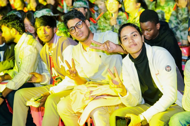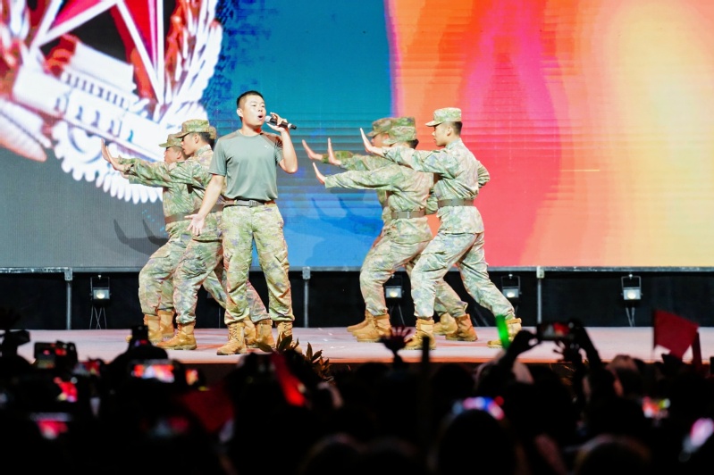 第二篇章“砥砺新奋进”中,教官们的精彩表演《擒敌拳》赢得了在场观众的阵阵掌声,展现了军训教官们坚韧不拔、英勇无畏的精神风貌。国风秀《国乐·盛世》由常武国学社倾情呈现,华服与国乐的完美交融,为观众带来了一场视听双重盛宴,彰显了中华文化的独特韵味与时代魅力。畅想音乐社的歌曲串烧《我爱你中国》、大学生艺术团爵士舞社的街舞串烧《青春律动》等节目轮番上演,充分展现了常纺学子的青春活力与无限创意,传递了积极向上的生活态度和追求美好的人生理想。