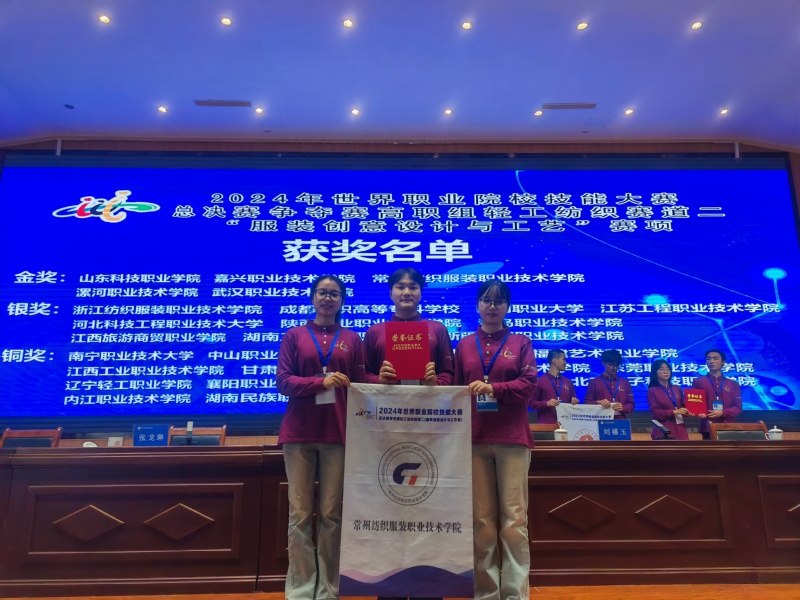 10月23-25日,2024年世界职业院校技能大赛总决赛争夺赛高职组轻工纺织赛道(二)服装创意设计与工艺赛项在山东科技职业学院开赛。本次大赛主题为“技炫青春,能创未来”。来自全国25个省(直辖市)共50支队伍参赛。永利官网雍定圆(服设213A班)、何若然(服工213B班)、巫一丹(服设233H班)(指导老师:穆雪梅、徐君)不畏强手、奋勇拼搏,斩获金奖!