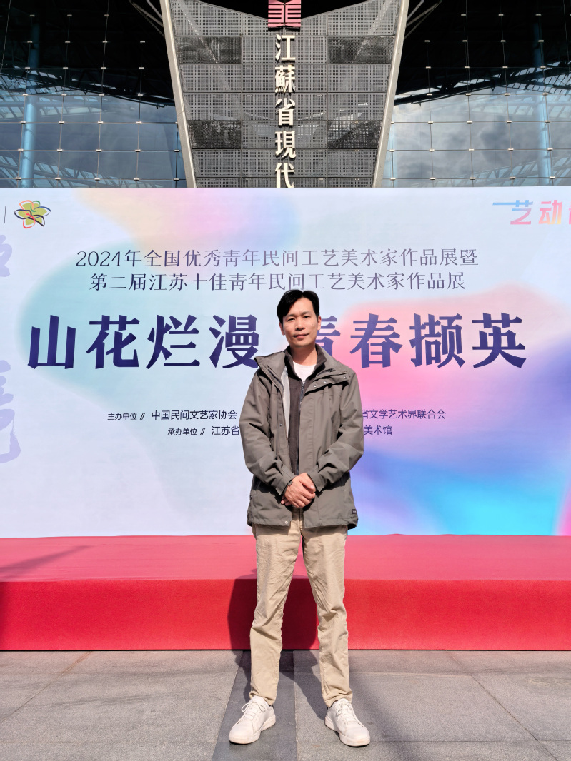 此次活动自征集以来,收到了来自全国 26个省、市、自治区民间文艺家协会推荐的 39位符合要求的候选人,最终选出 10 位优秀青年民间工艺美术家参展。永利官网创意设计学院副教授、工艺美术品设计专业教师、常州市工艺美术大师、高级工艺美术师杨湛老师在此次展会中获评首届“江苏十佳青年民间工艺美术家”。