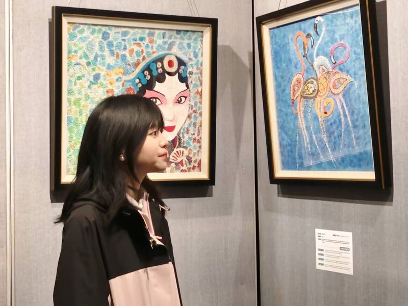 展览通过矿泉水瓶、废旧布料、树枝、铁制品、蛋壳等多种废弃材料,赋予废旧物以新的艺术生命。《腾飞》以废旧铁制玩具打造出机械鸟,象征自由与未来;拼布作品《天青色等烟雨》以蓝色布料和枯枝构建诗意画面,呼应自然与人类情感的连接;《浅夏时光》用废旧布料与饰品结合,展现浅夏的温柔与时间流逝的独特思考;《生命》通过干花与布料描绘生命的多样与脆弱;《见林》以树枝与树脂打造“窗口”,呼吁关注森林保护。这些作品不仅有多样化的视觉效果,更深刻传递了环保与艺术的融合理念。