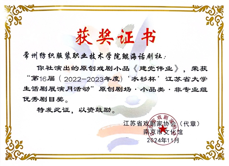 近日,第16届“水杉杯”江苏省大学生话剧展演月活动圆满落幕,由生·长思政工作室指导的鲲海话剧社凭借两部原创戏剧小品《觉醒》与《建党伟业》,在激烈的竞争中脱颖而出,均荣获原创剧场·小品类·非专业组优秀剧目奖。