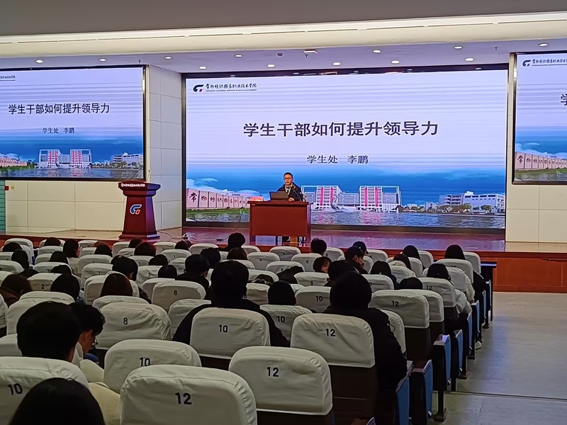 学生处副处长李鹏以《提升领导能力 服务班级发展》为题,从领导力的概念出发,具体讲解了领导力的构成要素,强调学生干部要提升服务意识,从品德、态度、知识、能力四个方面不断提升自我魅力。