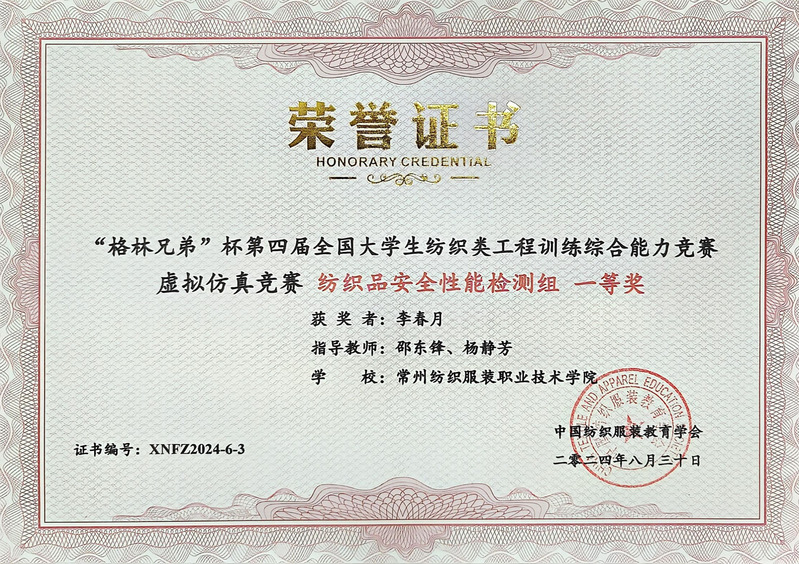 2024年11月,由中国纺织服装教育学会主办,山东科技职业学院、浙江纺织服装职业技术学院等单位共同承办的“格林兄弟”杯第四届全国纺织类大学生工程训练综合能力竞赛颁奖典礼在天津工业大学圆满举行。本次大赛高职赛道吸引了40所院校参与,报名参赛人次达2309。