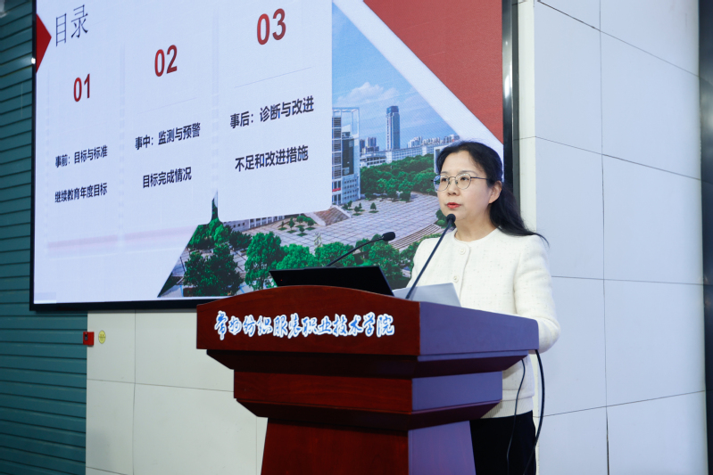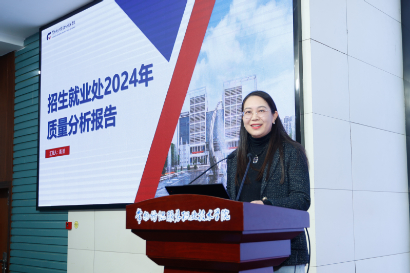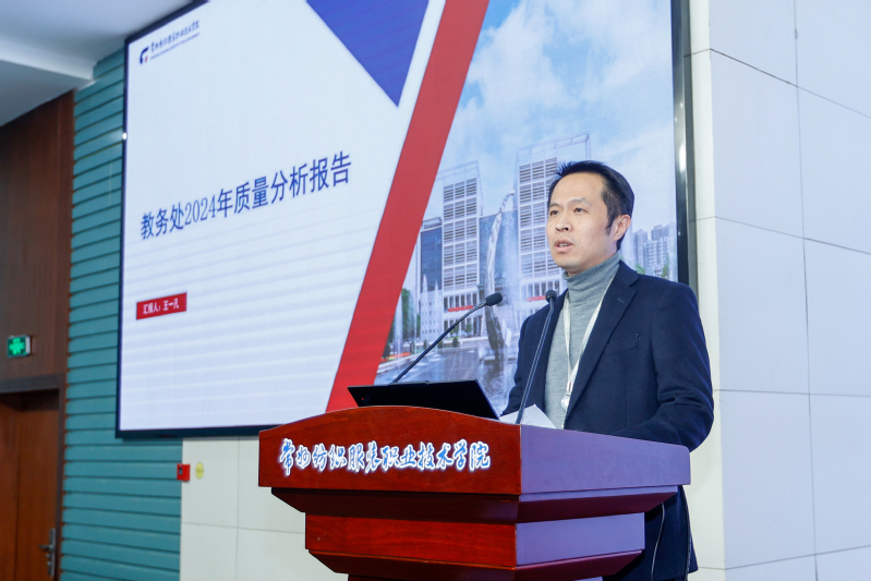 会上,教务处处长王一凡、科技处处长曹红梅、人事处处长夏冬、产教处处长严纲、学生处处长凌琳、招就处处长高妍、继教处处长姜燕作了专题质量分析报告,分别从学校专业建设质量、科技创新服务质量、队伍建设质量、产教融合质量、学生发展质量、生源及毕业生就业质量、继续教育与社会服务质量等方面进行了总结研判,并提出了思路举措。