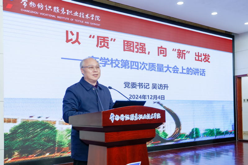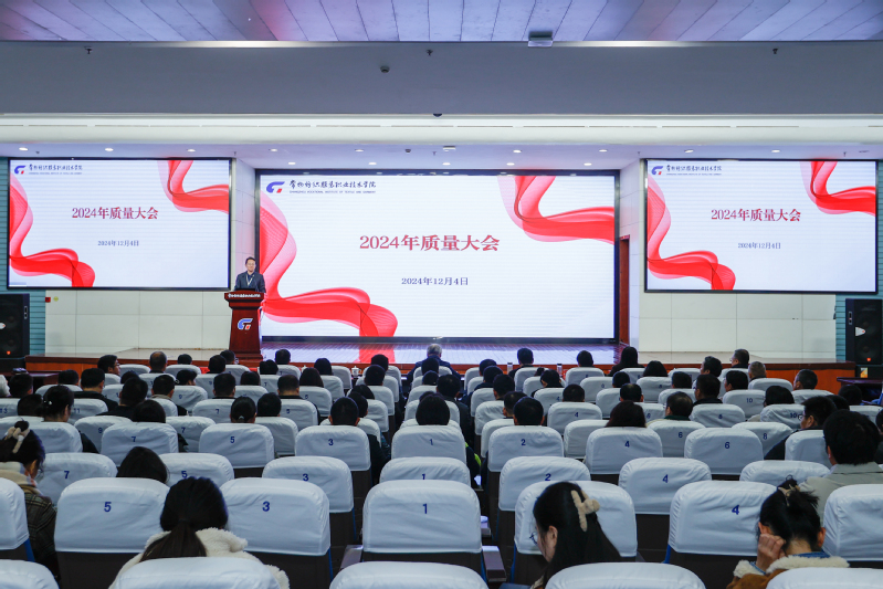 12月4日下午,2024年度全校质量大会在图文报告厅召开。会议的主要任务是深刻认识新时代职业教育的新使命新形势新要求,清醒面对学校目前发展的现实状况,准确把握新时代职业教育高质量发展的主要目标任务,做勇于担当、善于作为、甘于奉献、努力奋进的常纺人,为学校事业高质量发展贡献智慧和力量。会议由党委副书记、校长洪霄主持,全体教职工参加了此次会议。