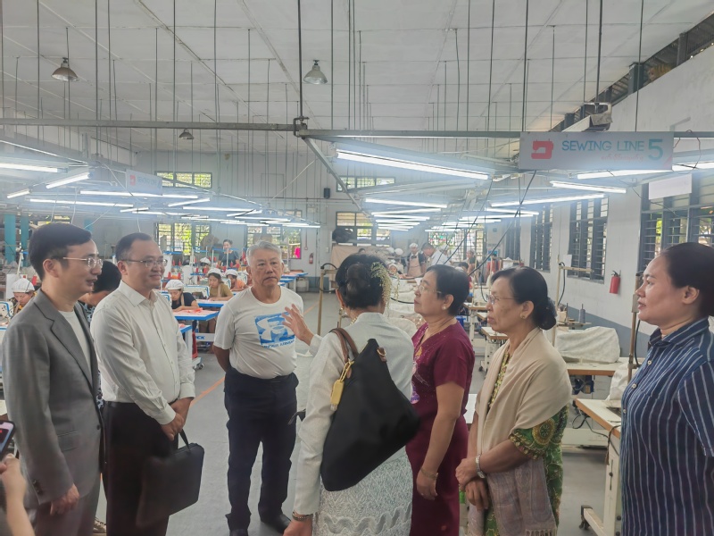 12月5日,代表团一行与中国驻缅大使馆商务参赞欧阳道冰、中国纺织品进出品商会副会长张新民、缅甸中国纺织服装协会会长施坤等进行了交流,了解中国服装企业在缅甸的发展情况,表达了推进职教出海、服务产业走出去的积极意愿。