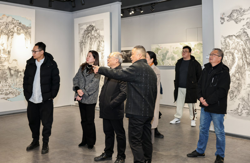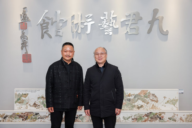 当天下午,吴访升等一行还受邀赴海虞镇九君艺术馆,参加《明远知行——九君写生创作展》。九君,原名孙修君,曾就读于永利官网服设922班,现为中国美术家协会会员,中国国家画院卢禹舜工作室画家,中国水墨画学会副秘书长,江苏省美术家协会会员,宿迁市第六届政协委员,宿迁市美协中国画艺委会主任,宿迁市民盟楚风画院副院长。作品先后被江苏省美术馆、江苏省现代美术馆,北京曹雪芹纪念馆、常熟市博物馆、刘海粟美术馆收藏。本次展览共展出他近年来前往全国各地写生创作的128幅精品力作,作品以独特视野、浓情笔墨,描绘了根植于大众生活的美好和憧憬。