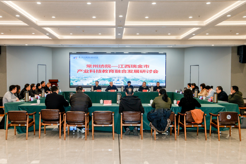 2024年12月20日,永利官网与瑞金市产业科技教育融合发展研讨会在领秀展厅召开。瑞金市人大常委会主任谢志斌、瑞金市人大常委会副主任、市工商联主席黄艳、瑞金市人大办主任胡振云、瑞金中专党委书记朱振华、瑞金市经开区企业服务中心主任科员杨彩云、瑞金市人大办干部廖国英、校党委书记吴访升、校党委副书记王顺明、校党委委员、副校长马昀、原副校长贺仰东、省纺织工业协会秘书长张仁乐、省纺织工业协会副秘书长周燕、常州市服装协会秘书长荆晓燕、常州市纺织工程学会秘书长刘晶、杰克科技有限公司项目经理顾海洋,以及五洋纺机有限公司等部分企业代表和相关职能部门、二级学院领导参加了此次研讨会,会议由校党委副书记王顺明主持。